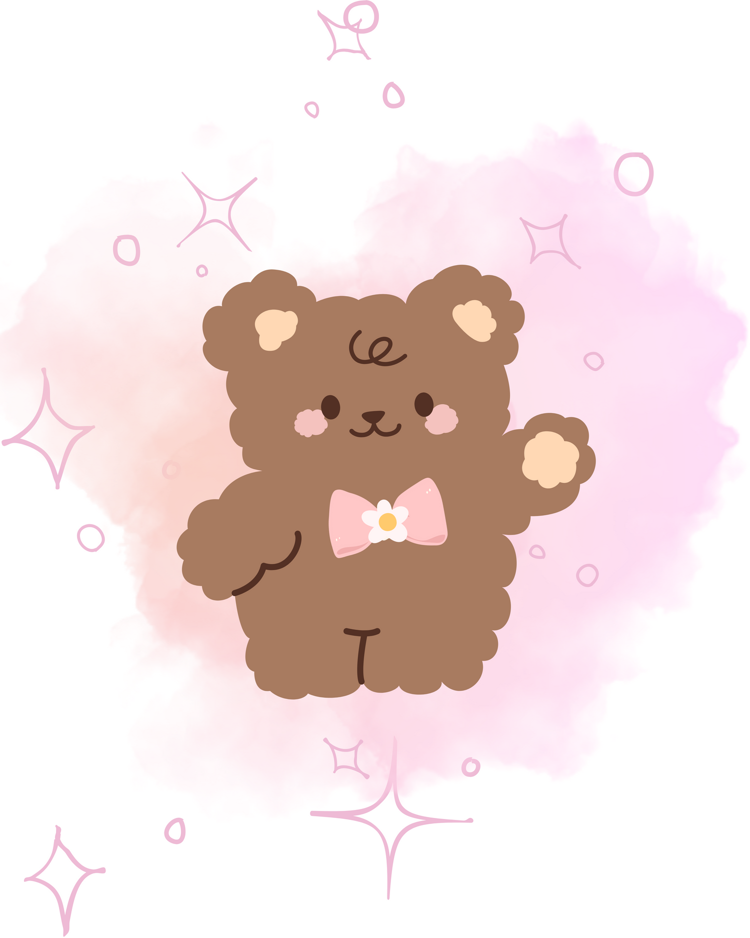 Lady, with her charming pink bow and fluffy fur, our cuddly bear delights with her roly-poly antics and clumsy charms. She playfully dances while nibbling honey, and her adorable hiccups sound like giggles.